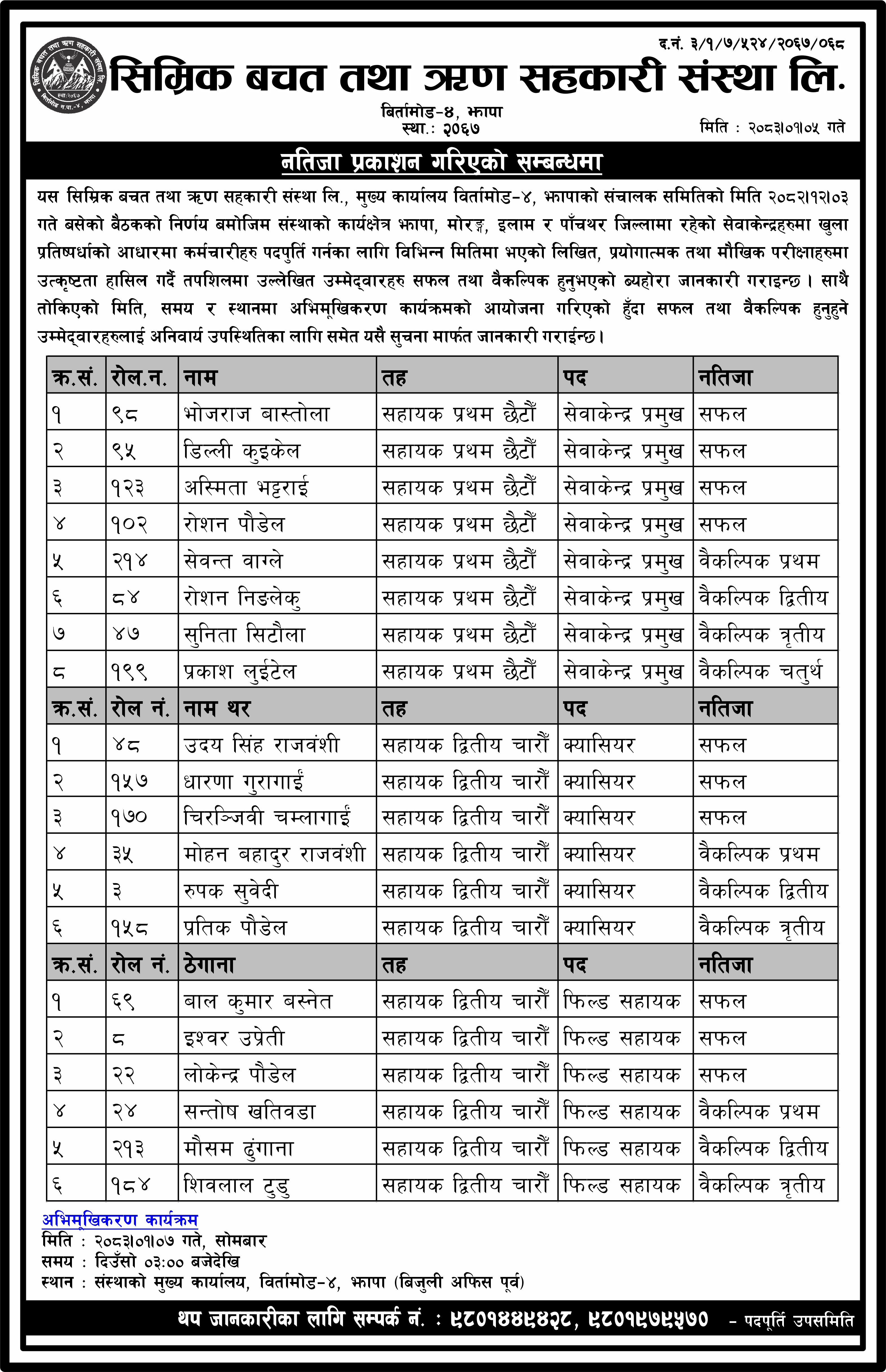 नतिजा प्रकाशन गरिएको सम्बन्धमा.....